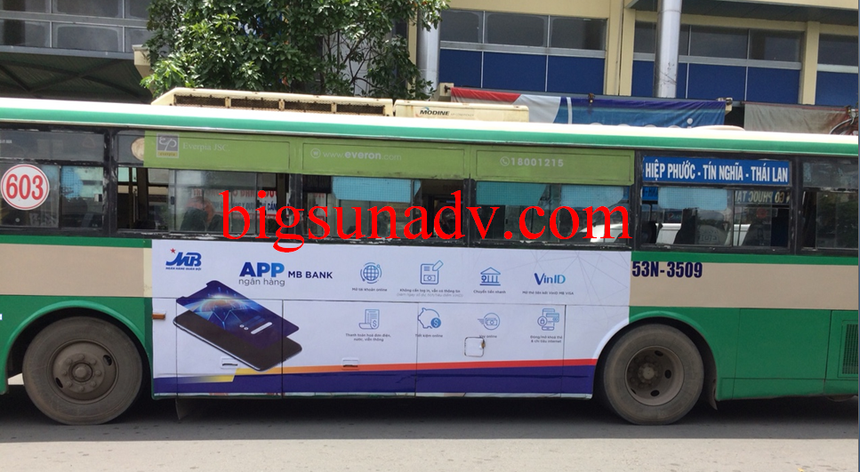 Big Sun thực hiện quảng cáo trên xe bus cho các sản phẩm - dịch vụ của ngân hàng Quân đội - MB Bank